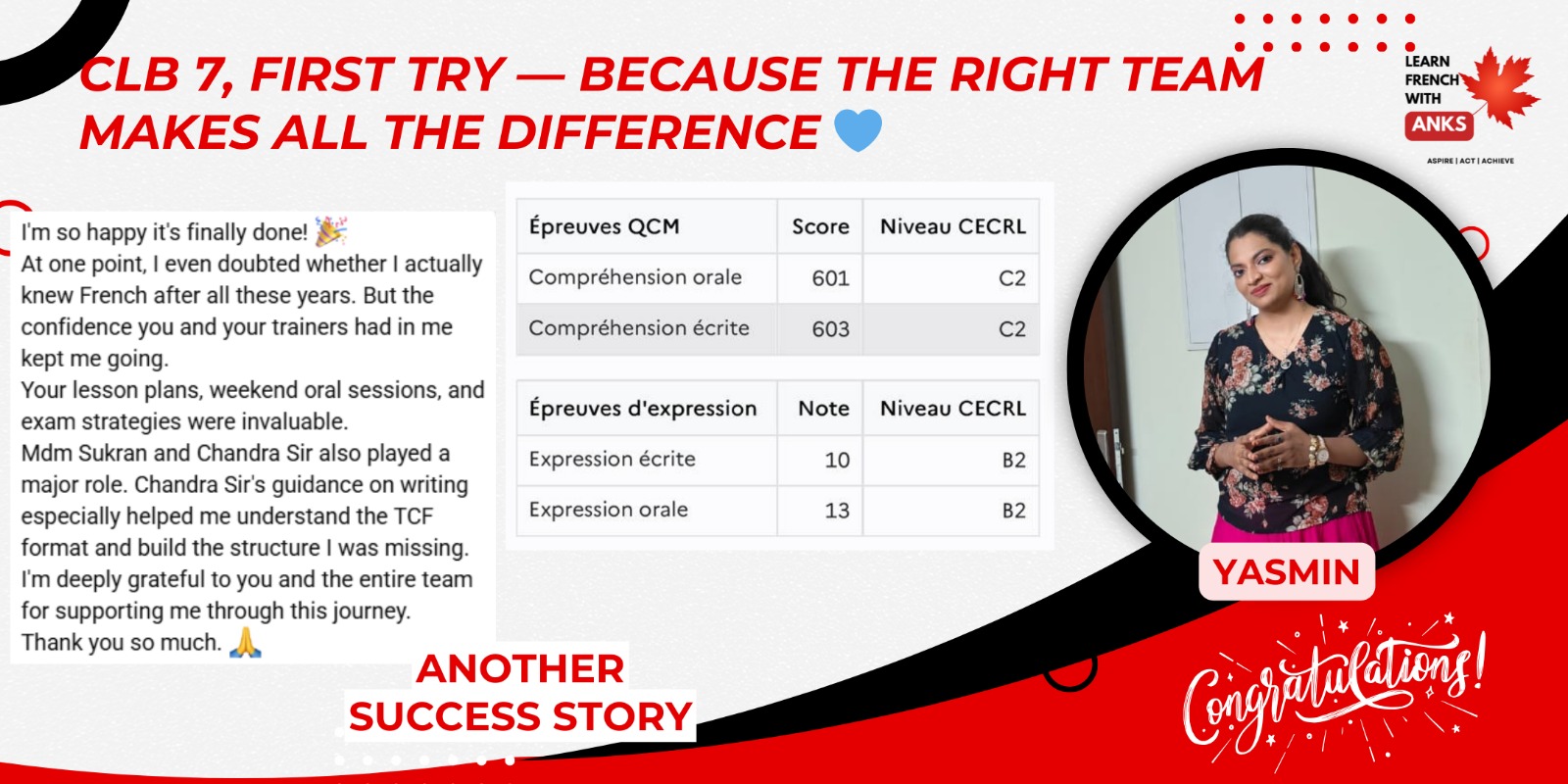 CLB 7 (Canadian Language Benchmark) is a key requirement for many Canada PR and Express Entry programs and is often the turning point for increasing CRS points. At Learn French with Anks, our structured, exam-focused curriculum, regular mock tests, and personalized feedback are designed to help you reach CLB 7 or higher in Listening, Reading, Writing, and Speaking.